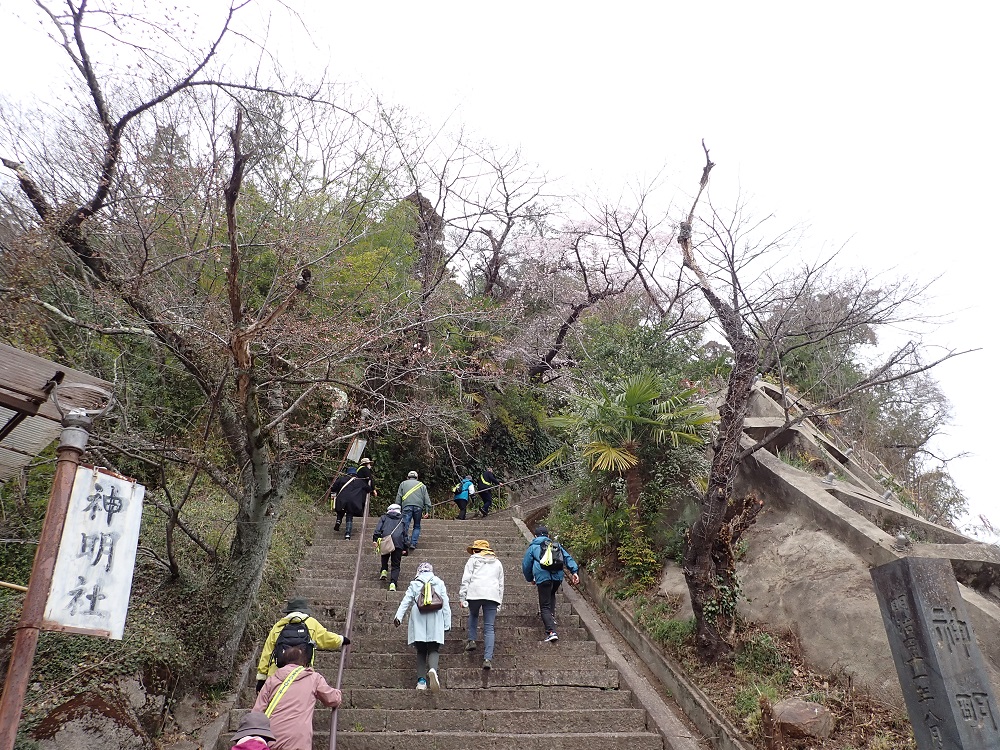 神社へ続く道は急な階段ですが、一番咲きの桜が応援してくれて頑張れました。いよいよ春本番って感じです。