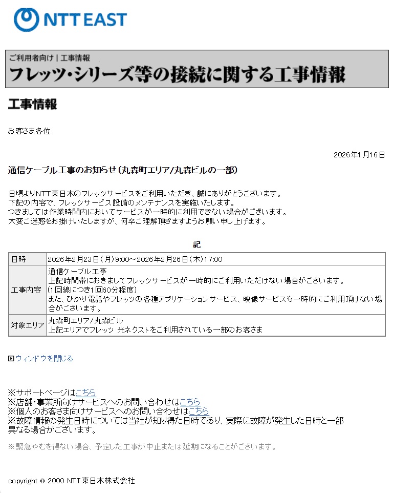 通信ケーブル工事のお知らせ(丸森地区・舘矢間地区)