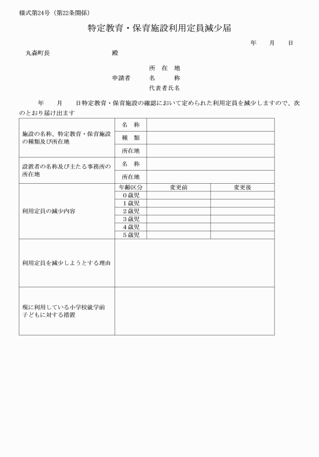 2 法第35条第2項の規定による届出は、特定教育・保育施設利用定員減少届(様式第24号)により行わなければならない。