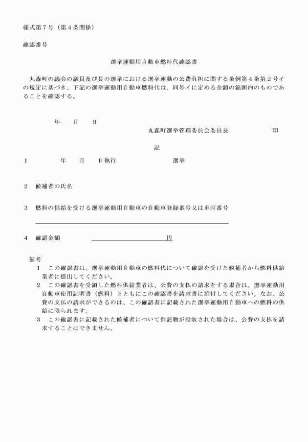 ○丸森町の議会の議員及び長の選挙における選挙運動の公費負担に関する規程